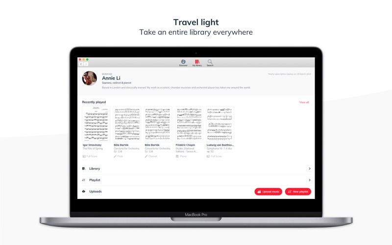 “nkoda颇具慧眼,能让人们窥见未来音乐制作的样子。” (西蒙·拉特尔爵士) 作为世界上最了不起的订阅式活页乐谱图书馆,nkoda正以一己之力改变着对音乐的获取、学习、练习及演播方式。 nkoda图书馆集合并储存了跨越上下500年的各类音乐–古典还是当代,包罗万象。获得无限查阅几乎任何乐器的拥有版权许可的乐谱和声部的访问权。 总数达3千万页的活页乐谱 涵盖所有流派的11万个名称 超过80家优秀出版商(且在持续增加中) 特色: 播放,可在任何设备上播放最佳版本 标注,在每页乐谱上标注并使其个性化 访问,离线访问乐谱和声部 分享,与其他音乐家分享您的标注 编辑,并创造属于您自己的播放列表 nkoda应用App还能与 蓝牙翻页器兼容,无需手动您也能在演奏时轻松翻页。您已经有自己的乐谱了吗?上传 并在活页乐谱阅读器中进行编辑。 提供多种语言(包括中文、英语、法语、德语、意大利语、日语、韩语、波兰语、葡萄牙语、俄语、西班牙语) ---- nkoda 订阅简介。 您的订阅项目将在14天免费试用期结束后,向您与iTune账户绑定的银行卡或信用卡收取费用。根据您选择的订阅模式,可以每月付费或者按年付费。两种订阅模式均可获取我们整个音乐库的全部内容、特色及益处的无限使用权限。这两种模式所提供的服务相同,唯一的区别在于,选择年费订阅模式可享受20%的价格优惠。若在14天免费试用期结束前选择取消订阅,又在该14天期限结束后再次选择订阅,则您将失去免费试用资格。您的订阅项目将在试用期结束后自动更新,除非您选择关闭自动更新功能,或者在试用期结束的至少24小时前选择取消订阅。用户可自主管理订阅项目,并可在选择订阅后,从自己的iTune账户设置中将自动更新选项关闭。 如需更多信息,请查询: EULA - https://www.nkoda.com/legal/end-user-licence-agreement 隐私政策 - https://www.nkoda.com/legal/privacy-policy 最新漏洞修复与改进