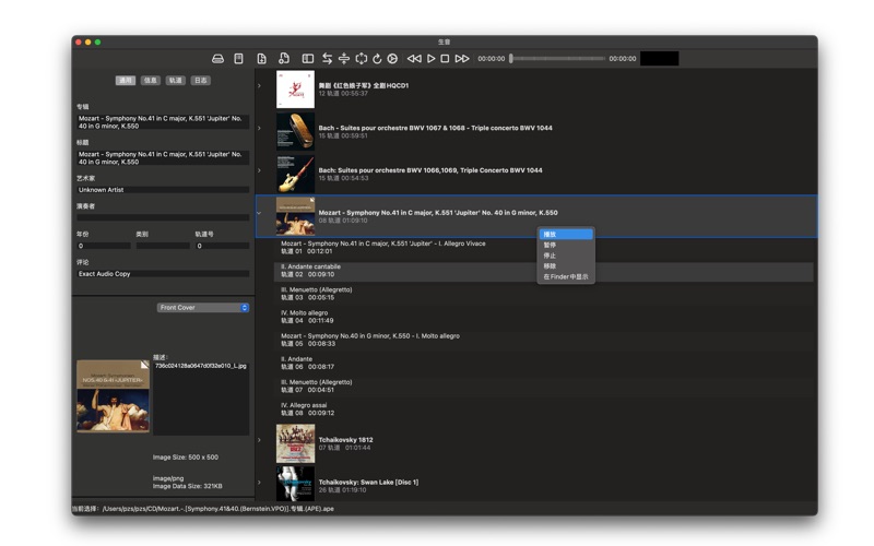 生音(singyam)是一款专为 macOS 打造的音乐播放器、音乐标签(Tag)编辑器以及音乐格式转换器应用。它设计简洁、操作便捷,支持播放多种格式的本地音频文件,编辑音频元数据,并能将音频文件转换为不同格式。 功能特性: 兼容多种音频格式,包括 MP3、FLAC、APE、OGG、WAV、AAC、M4A、DSD、AIFF、AIFC、CAF、TTA、 3GP、OPUS、WavPack 等 播放列表功能,可保存或加载播放列表 支持解析 CUE 分轨文件 可播放 DSD 音频文件(DSF、DFF 格式),提供 DoP(DSD over PCM)和 PCM 两种解码模式 自动将相同专辑名的独立音轨文件归类为同一专辑 集成编辑器:编辑、修改音频文件标签(Tag)数据 集成转换器:在各种音频格式间进行格式转换 排除窗口显示时的已知错误