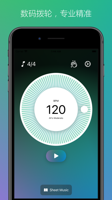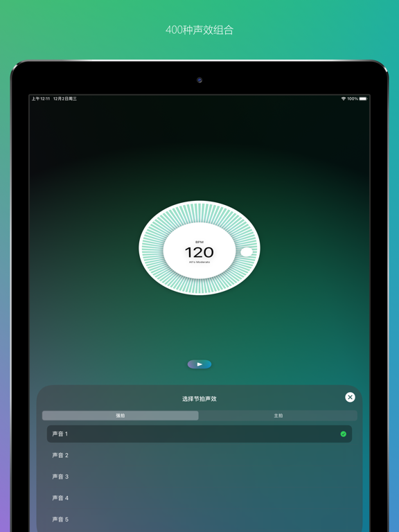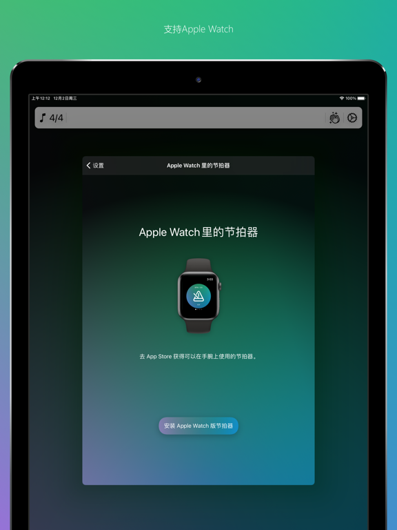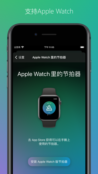 首款支持Apple Watch的节拍器!!! Mac、iPhone、iPad多平台的完美体验!!! =============================================== 中央音乐学院导师推荐!!! 可以装在兜里的节拍器!!! 抖音快手老罗推荐五星!!! 尤克里里吉他卡林巴伴侣!!! =============================================== 无论你是一名职业的音乐人,乐队主力,或是正在业余学习一门乐器,在你和音乐交流的过程中,肯定离不开一种叫做“节拍器”的小玩意儿。 传统节拍器多少还是有点笨重,你总不能走哪里都带着个节拍器吧?现在都0202年了,我们应该有更好的选择,于是,我强烈推荐喜欢音乐的你,来体验一下这款节拍器软件。 首先,我们没有广告!!! 没有广告!!! 没有广告!!! 重要的是,比起传统节拍器,我们可以更加灵活的设置BPM,支持80种拍子!!!常见的3/4,4/4可以有,不常见的8/8,8/16也有!!! 精选20种节拍声效,可实现400种组合节拍效果,节拍、伴奏、暖场、修禅、助眠都可以用~! 最酷的是,我们提供了Apple Watch版本,戴上手腕上的节拍器!酷不酷!!? 另外我们还支持更换主题颜色,给个性的你更加个性的选择! 现在位于世界各地的音乐学校的学生与教师都在使用我们的节拍器。 如果您来自一家正在使用或愿意使用我们的应用的教育机构,请发送邮件给我们至support@aben.io。 从1.1.0版本开始,该应用可以免费下载并使用节拍器功能。对于乐谱功能,将有10次免费体验机会。免费体验次数用完之后,您可以使用订阅服务继续使用乐谱功能,或者继续免费 的使用机器拍功能。 Privacy Policy https://metronome.aben.io/privacy-policy/ Terms of Service https://metronome.aben.io/terms/ watchOS: * 新增: 更多震动模式,个别模式会有系统声音,可以将系统静音来安静使用 iOS: * 新增: 邀请好友免费使用