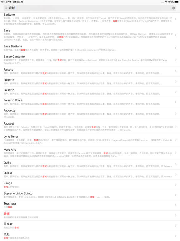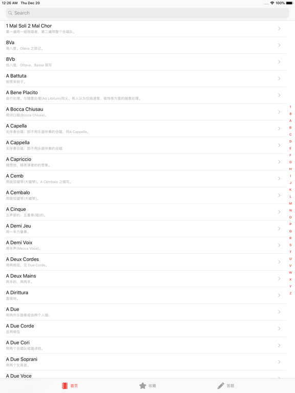 「音乐词典」是一款音乐术语、乐器字典。是您学习音乐知识的必备工具 「音乐词典」收录了近 20000 个音乐术语、音乐表情术语、乐器、英皇乐理等词汇。 同时收录了近 600 个中文音乐术语解释 基本功能: - 支持中文、英语模糊搜索 - 支持 Spotlight 快速搜索 - 内置真人发音。 - 相关词汇,及词汇缩写 - 收藏常用词汇 - 内置答题系统,帮助您更好的复习 - 完全离线使用 - 完善词库。