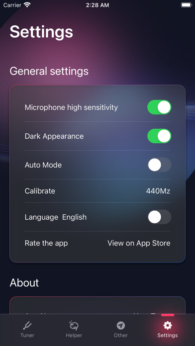 你的调音器,是一款专门用于古典吉他、原声吉他、民谣吉他调音器APP。 主要功能: 1、 为古典吉他、原声吉他、民谣吉他调音定制,不同于其他通用调音器,所有校准频率均以前三种吉他为基准,精准度高 2、手动调音模式,适用于新购买的琴、长时间没有调音的琴,三天没有弹过的古典吉他调音。 3、自动调音模式,适用于每天练琴之前快速调音 4、调弦模式包含标准调弦和常用的开放调弦 5、调弦按键特别设置显示"8度音符全名"和琴弦号,减少因为单字符音名造成的错误调弦。 7、主界面的琴是作者本人的,按键提示音就是这把琴的原声采样。 8、使用助手包含调音器使用的说明和注意事项。 在后续版本将会增加更多实用功能,欢迎您提出任何建议。 联系EMAIL: 451993762@qq.com 你的调音器当然是完全纯净和免费的,因为你的调音器才是完美的! 1、新增语言-英语 2、新增颜色主题功能,现在可以自由选择喜欢的颜色主题 3、新增APP评价链接 4、新增”其他“栏目,用于提供展示作者本人其他APP作品和进度 5、修正帮助栏目的UI错误 6、修正主菜单按钮背景色位置偏移问题 7、App名称变更为”你的调音器“,成为”你的音乐工具包“套装系列的成员之一