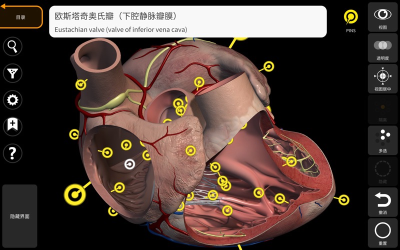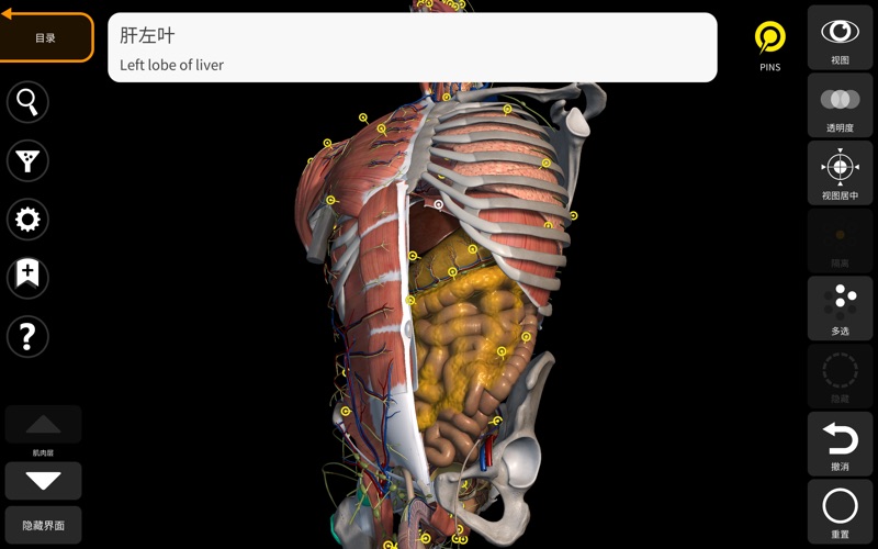 这个应用程序可免费下载,但需要进行应用程序内购买才能解锁所有内容。 某些内容始终可以自由访问,使您可以正确地尝试应用程序。 “Anatomy 3D Atlas”(解剖学三维图谱)允许您以简单和互动的方式研究人体解剖结构。 通过简单直观的界面,可以从任何角度观察每个解剖结构。 解剖学3D模型特别注意细节,纹理分辨率高达4k。 按区域划分和预定义视图有助于观察以及单个部分或系统组的研究以及不同器官之间的关系。 “Anatomy - 3D Atlas”(解剖学 - 三维图谱)是一个针对医学生、医生、物理治疗师、护理人员,护士、运动训练员以及任何有兴趣深化他们的人体解剖学知识的人士而开发的应用程序。 这个应用程序是一个很好的工具,以补充经典的人体解剖学书籍 解剖结构三维模型 • 肌肉骨骼系统 • 心血管系统 • 神经系统 • 呼吸系统 • 消化系统 •泌尿生殖系统(男性和女性) • 內分泌系統 • 淋巴系統 • 眼睛和耳朵系统 特色 • 简单直观的界面 • 在三维空间中旋转和放大每个模型 • 隐藏或隔离单个或多个选定模型的选项 • 筛选以隐藏或显示每个系统 • 搜索功能可轻松找到每个解剖部位 • 书签功能可保存自定义视图 • “智能”旋转,可自动移动旋转中心 • 透明度功能 • 从浅表层到最深层,提供各层肌肉的可视化 • 通过选择模型或插针,显示相关的解剖学术语 • 肌肉的描述:起点、止点、神经支配和动作 • 显示/隐藏UI界面(对于小屏幕非常有用) 多语种 • 解剖学术语和用户界面有12种语言版本:拉丁语、英语、法语、德语、意大利语、葡萄牙语、俄语、西班牙语、中文、日语、韩语和土耳其语 • 解剖学术语可以同时以两种语言显示 • 小的错误修复