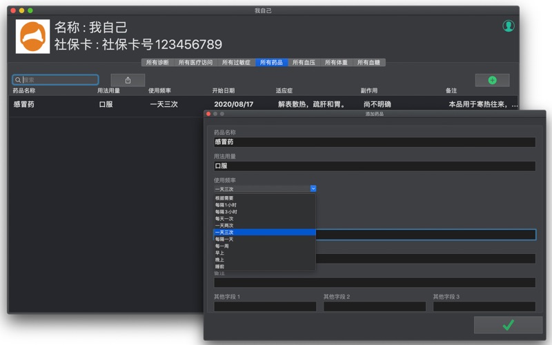 家庭病史APP_日常医疗诊断记录药品和过敏症记事账本