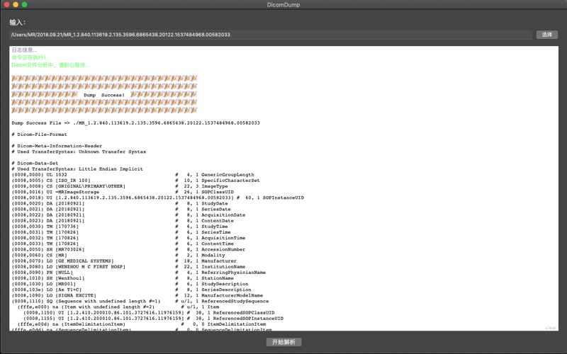 一款DICOM分析工具,包含DICOM文件P10标准测试、DICOM文件分析、转换P10标准DICOM文件三项功能。