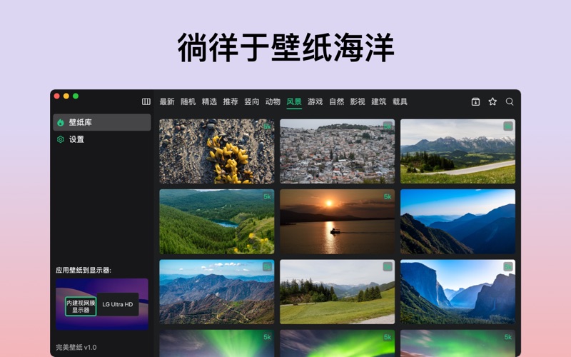 「 完美壁纸」 完美壁纸可以每天为您的桌面墙纸制作令人惊叹的照片。 所有壁纸均由我们的团队精心挑选,以使每一个背景看起来美丽动人,包含4K(超高清|超高清)以及 5K (全高清)壁纸|背景。 如果您还在寻找Mac下的壁纸,不要犹豫,超级壁纸就是您想要的! 特性: ● 提供海量精美动态壁纸素材,持续动态更新,你不必花时间找素材。 ● 一键预览,设置壁纸 ● 支持多种屏幕宽高比和原始分辨率。 ● 零App学习成本,简洁的交互,追求最好的体验。 ● 我们致力于简化应用程序,从而提供出色的性能。节省电池。 ● 您可以一键设置墙纸。无需急于打开图库并查找图像 - 修复无法 restore 会员的问题 - 增加更多的高清壁纸