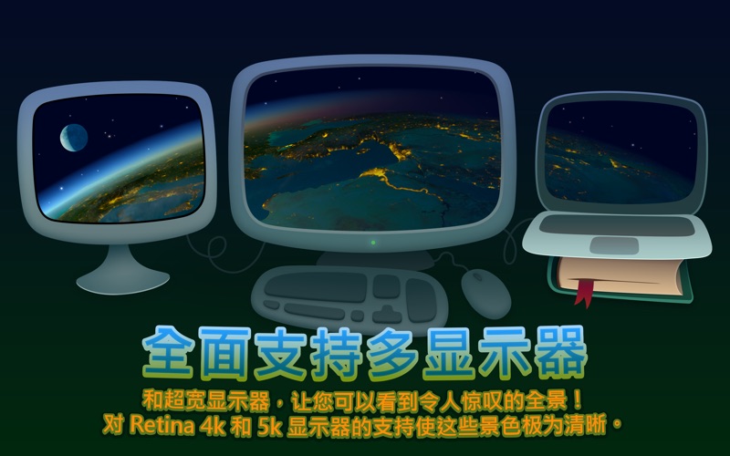 把你的桌面变成一个宇宙飞船舷窗,在星空下,大陆和岛屿的轮廓飘过。这是我们美丽的地球,我们共同的家园!当你从轨道下降到地表时,你会看到数百个地标、不同文化的人和历史人物。令人惊叹的风景因野生动物和植物的多样性而更加丰富。 这不是一个反复播放的视频。这是一个动态的、实时的场景,你看到的一切都在现场发生——只为你! 特征: •地球表面的精确和详细模型 •云层覆盖的大气层 •配备专用照明系统的昼夜循环 •逼真的星空和精确的太阳定位 •原声 •带有节能系统的动态壁纸 •快速转换到具有密码保护的屏幕保护模式 •支持多显示器系统 “世界奇迹”扩展功能: •地球表面附近的低空相机高度 •全球建筑和自然地标 •不同文化和历史人物的代表 •自然栖息地的动物、鸟类和海洋生物 •树木和植被 _________________ 查看我们的其他应用: "Screen Wonders" - 最好的实时壁纸,尽在一款应用。 "Earth 3D - World Atlas" - 智慧地球。 成为Facebook的粉丝: https://www.facebook.com/3Planesoft 访问我们的网站: https://www.3planesoft.com https://screenwonders.com/zh/ • 稳定性提升和错误修复。