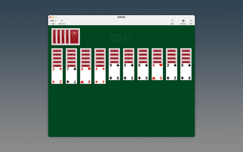 欢迎使用蜘蛛纸牌游戏 蜘蛛纸牌是一种富有挑战性的单人扑克牌游戏,目标是在规定的规则下完成牌的排序。在这个帮助文档中,您将找到关于如何开始游戏、规则解释以及一些有用的提示。 游戏规则 游戏目标:将所有纸牌按照规定的顺序从大到小排列在游戏区域。 牌堆:游戏开始时,牌堆中包含了所有纸牌。您需要在不同的列中移动这些牌以达到目标。 移动规则: - 您可以移动整列的牌。 - 可以将一张牌或一组有序的牌移到其他列。 - 可以将纸牌放置在比其值小的另一张纸牌上。 空列:您可以在空列上移动任意牌。 发牌:当您没有牌可以移动的时候,您可以点击桌面上方的扑克牌进行下一次发牌。 控制说明 点击:单击牌或牌堆以选择。 拖动:按住并拖动牌,将其移到目标位置。 提示与策略 规划:在移动纸牌时,请先规划好每一步的动作,确保不会陷入无法完成的局面。 利用空列:空列是整个游戏中非常重要的工具,善加利用。 深思熟虑:蜘蛛纸牌需要耐心和深思熟虑。不要急于做出决定,仔细考虑每一步的影响。 常见问题解答 Q: 无法移动牌怎么办? A: 确保您只能将纸牌放在比其值小的其他牌上,并检查是否有可用的空列。 Q: 如何撤销一步操作? A: 你可以在下一次发牌之前和完成一组牌之前进行撤销操作。 1. 支持游戏中心对战 2. 支持撤销操作