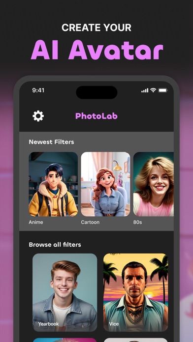 PhotoLab is designed to transform your ordinary selfies into extraordinary AI-generated photos. It has a user-friendly interface and a unlimited range of artistic effects. The app caters to various needs and moods, offering everything from professional-looking images for your CV to fun avatars to share with your friends. Simple Creation Process: * Select Your Effect: Begin by exploring and selecting from the wide range of available effects. Whether it's for a professional look or a playful design, there's an effect for every mood. PhotoLab is equipped with an array of artistic filters. You can choose from timeless yearbook effects, vibrant anime styles, festive Christmas themes, and even adventurous racing driver looks. * Upload Your Photo: Simply upload a selfie or any photo from your gallery. PhotoLab's advanced AI technology is designed to work effectively with just a single image. * Choose the Format: Decide on the format you want for your avatar – be it square for profile pictures or a standard size for sharing. * Quick Transformation: In just a few seconds, PhotoLab's powerful AI processes your photo, applying the chosen effect with precision and creativity. * View the Results: Instantly view different variations of your avatar, all reflecting the chosen effect in unique ways. * Easy Export and Sharing: Once you find the perfect avatar, you can effortlessly save it to your camera roll or export it directly to your favorite social networks. PhotoLab is not just an app – it's a gateway to exploring your identity in the digital world. It combines simplicity, creativity, and speed, offering a unique way to express yourself through AI-powered avatars. Whether for professional use or social fun, PhotoLab is your go-to app for avatar creation on iOS. Subscribe to access to premium app features; subscription details are the following: • Length: weekly, monthly, yearly • Your payment will be charged to your iTunes Account as soon as you confirm your purchase • You can manage your subscriptions and turn off auto-renewal from your Account Settings after the purchase • Your subscription will renew automatically, unless you turn off auto-renew at least 24 hours before the end of the current period • The cost of renewal will be charged to your account in the 24 hours prior to the end of the current period • When canceling a subscription, your subscription will stay active until the end of the period. Auto-renewal will be disabled, but the current subscription will not be refunded • Any unused portion of a free trial period, if offered, will be forfeited when purchasing a subscription Terms of Use: https://www.apple.com/legal/internet-services/itunes/dev/stdeula/ Bug fixes and stability improvements