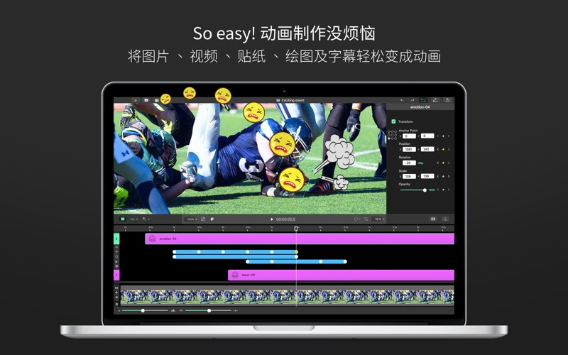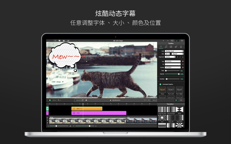 -正在为了公司的提案demo视频而烦恼吗? -想要完成一支令老师惊艳的视频作品吗? -想要纪录与好友及家人共享的每一刻吗? 那就赶快来下载V视频Mac版,轻松做出独一无二的影片吧! 内容提要 **丰富的剪辑工具与特效** •4种进阶笔刷,重点任意画、线条随手拉 •6种转场效果,小视频做出大电影的效果 •9组动态字幕,弹幕对白随意添加 •20种滤镜让画面更添艺术感 •上百款静态及动态贴纸,展现个人特色 •自由调整字幕的字体、大小及位置 •添加音乐及录音文件,并随意调整音量大小、淡出淡入 •更改视频背景颜色 **聪明的动画解决方案** •独家的关键影格让动画制作更easy,快速将各种素材转换成动画,包括图片、影片、笔刷、贴纸及字幕 •利用关键影格精确地调整音乐的音量 **每个人都能轻松上手的编辑工具** •直觉的时间轴接口及快捷键操作让编辑更方便 •5种屏幕比例,适合5大社群平台 •快速分享至优酷、爱奇艺、YouTube、Twitter、Vimeo •上传影片至Anizone,一同创意脑力激发 •Kdan Cloud凯钿云端备份服务,随时随地获取、浏览视频 **订阅方案** - Kdan Cloud: 包含500GB Kdan Cloud空间。提供两种方案: $2.99/month or $9.99/year - Write-on Video for Mac Pro : 包含500GB Kdan Cloud空间和全功能解锁。提供三种方案: $3.99/month, $8.99/ quarter, $15.99/year - Creativity 365: 包含1TB Kdan Cloud空间、Write-on Video和凯钿Creativity 365全系列产品功能解锁。提供三种方案: $9.99/month, $19.99/quarter, $59.99/year 交易将通过您iTunes账号进行支付订阅费用,订阅方案采自动更新制,您的iTunes账号将于当期期满前24小时内支付新一期订阅费用(同前一期订阅方案与费用),若欲取消订阅者请务必在当期订阅截止日24小时前办理取消,完成订阅服务后,可至iTunes账号设定管理您的购买内容,确认订阅资格后,恕无法取消当期订阅内容。 服务条款:https://cloud.kdanmobile.com/articles/terms_of_service 隐私声明:https://cloud.kdanmobile.com/articles/privacy_policy 需要帮忙吗? 请来信至appservice@kdanmobile.com或至https://support.kdanmobile.com查看更多产品教学。 我们重视您的用户体验和隐私。本次更新提供帐号管理功能,让您更全面的掌控帐号资讯。