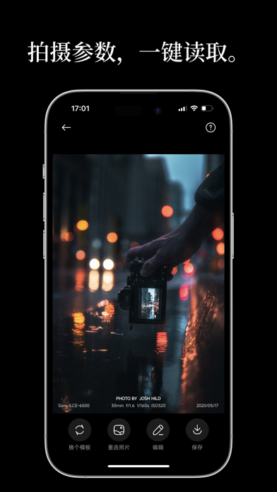 给照片自动添加EXIF拍摄信息、大牌相机Logo、个人签名。优雅的水印设计、极简的参数边框、杂志感的封面模板将会持续更新,瞄准你一键添加EXIF的刚需,满足你审美品位的严苛自律。轻而美的署名,简而准的参数,既是视觉点缀,又是巩固你摄影作品完成度与辨识度的利器。 我们的目标是,一行水印在手,绝美点缀在心。 【我们的交互重点】 ◆ 一键获取EXIF信息 对接多个相机品牌及手机的厂商注释,一键读取相机名、镜头型、光圈、快门、焦距、ISO和时间、经纬度等各种exif元数据。并让你所见即所得,参数可调、自由编辑。 ◆ 大牌Logo应有尽有 徕卡、哈苏、飞思、索尼(α/G大师)、佳能、富士、尼康、理光、蔡司、禄来、Sinar、大疆、苹果、谷歌Pixel、小米、荣耀...高端logo任你选用。 ◆ 上传你的个性签名 在“编辑-设备Logo”中一键批量添加个人签名和工作室Logo,自动保存,满足你灵活搭配所需。更有保存偏好的“再来一张”,效率翻倍,省时省力。 ◆ 支持JPEG、PGN、BMP、WEBP、DNG、NEF、RAF、CR3等多种图片格式 把数码相机拍下的照片传输到手机里,只要iPhone相册读得出,我们就读得准。Exif信息不全?没关系,从logo到文字全都可自定义。 ◆ 原图出图,无损无压缩 无论付费与否,所有出图均使用原图合成,保持原画质分辨率,无损无压缩无广告。 ◆ 多种模板,随心切换 当前模板不中意?没关系,按钮点一次换一个,直接看你照片合成后的效果图,惊喜与亮目,总有一款暗合你心。 ◆ 批量导出,效率翻倍 批量处理功能,自动复用你的参数喜好,最高支持100张照片一键导出。 ◆ 心水文案库,不用动脑 不满足于修图和美化,还要加字?摄影金句、文艺短句、中文外文、盐系甜系...精挑细选的语句已备好,点一下换一句。 ◆ 拼图相框和杂志封面 除参数水印模板外,还有一众复古相框、经典窄框、模拟胶片电影感frame、宫格拼图、杂志海报影集封面样式,只为给你的一张好照片升级观感,为一组系列照一笔点睛。 ◆ 免费和Pro,各取所需 经典的参数模板随你取用,免费贴心。设计后的Pro会员专属模板,也持续上新。盼望支持,加速更新。 【内购说明】 Pro会员权益:专属美学模板,定期持续上新。 内购周期:1个月(月度订阅)、1年(年度订阅)、永久(一次性购买)。 付款:用户确认购买并支付成功后,计入iTunes账户。 续订:苹果iTunes账户会在到期前24小时内自动扣费进行续订,扣费成功后订阅周期顺延一个周期。 取消续订:若不打算续订,请在当前计费周期结束前至少24小时手动关闭(通过iTunes-Apple ID的设置管理入口),续期费用将在当前周期结束后的24小时内扣除。 【相关协议】 用户协议 http://www.5258mall.com/yihang/service_agreement.html 隐私政策 http://www.5258mall.com/yihang/privacy_policy.html 【联系我们】 电邮:oneline@shencaiee.com 等你来信。 功能升级,一行水印在手,绝美点缀在心。 - 新增1个参数模板 - 性能和体验优化