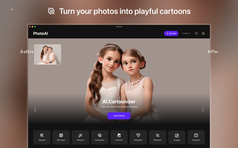 PhotoAI 是一款一体式 AI 工具包,可让您使用强大的 AI 工具增强照片效果。这是您可以在我们的程序中使用的 AI 工具列表。 我们添加的新功能 #1 AI Image Cartoonzier:将您的图像和面部照片转换为卡通风格。创建漂亮的卡通头像和表情符号。 #2 AI动漫升级器:自动升级动漫和卡通图片。为喜爱的动漫图片创建 16K 壁纸。 Waifu2x 的最佳替代品 主要特点: #1 AI Image Enlarger:在不降低质量的情况下将图像放大 200%、400%、800%。由人工智能升级技术提供支持。 #2 AI Image Enhancer:一键增强图像质量、颜色和对比度。基于我们的深度学习。 #3 AI Image Denoiser:对图像进行降噪并去除噪音。 #4 AI Image Sharpener:由高 ISO 相机引起的锐化和去模糊图像 #5 AI Face Retouch:修饰你的脸并修复模糊的人像图片 #6 AI 背景橡皮擦:自动从图像中擦除和去除背景 #7 AI 图片着色器:为黑白图片着色并添加颜色,让旧记忆重现生机。 #8 AI HDR Maker:从单张照片中创建出引人注目且令人惊叹的 HDR 照片。 订阅: #1 月度计划:每月 9.99 美元。使用无限制访问的所有服务和功能。 #2 YearlyPlan:每年 49.99 美元。使用无限制访问的所有服务和功能。 #3 终身计划:89.99 美元。一次付费,永久使用。使用无限制访问的所有服务和功能。 如果您有任何问题,请联系 support@imglarger.com。 隐私政策:https://imglarger.com/blog/photoai-privacy-policy/ 条款:https://imglarger.com/blog/photoai-terms/ - 提升了用户界面和用户体验,提供更简洁直观的设计。 - 优化了工作流程,提供更流畅的照片增强体验。