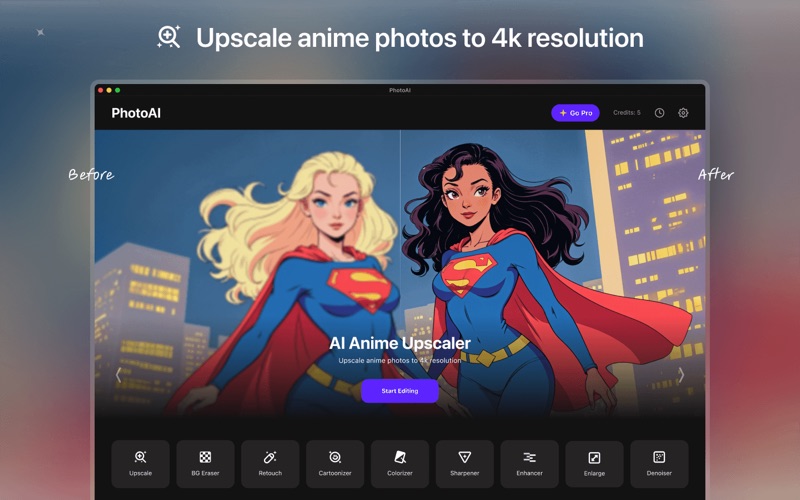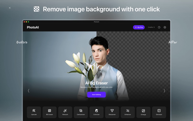 PhotoAIAI增強无损放大背景移除