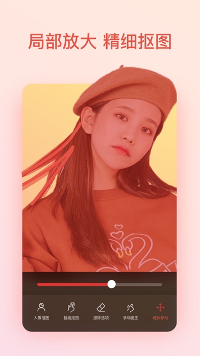抠图能够智能的抠取出您照片中想要的部分。另外抠出来的图片可以保存在系统相册和应用的相册中。 主要特性: ---智能抠图:只需要稍微勾勒一下要抠图的主体,然后app会自动的完成抠图操作 ---系统相册和应用相册:抠图的图片可以保存下来,随时可以编辑 ---易于使用:支持放大、移动、旋转、剪切等多种编辑操作 ---支持撤销重做 ---分享:你可以通过多种方式分享你的作品 1. 支持泰语和越南语