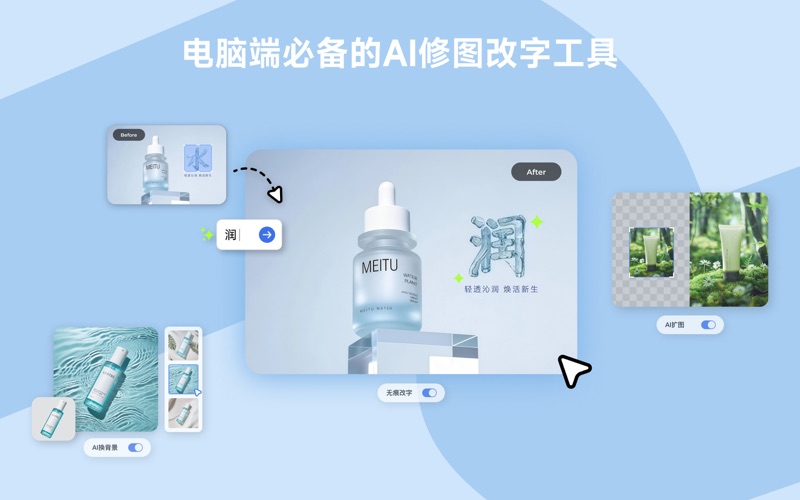 美图秀秀是最简单的图片处理工具,能快速实现专业级修图效果。AI工具持续上新,人人都能做好图! ===AI改图,智能设计不费力=== 【AI智能抠图】全品类高效,3s去背景,一键换底色/本地图片 【AI消除】一键去多余文字、路人、皮肤痘痕斑点、复杂背景等,不留痕迹! 【AI变清晰】超清画质重生,告别渣画质 【AI换背景】输入关键词,AI生成商品、人像场景图~ 【AI扩图】自由比例扩展画幅,智能填补画面,构图无需裁剪! 【AI换背景】:告别专业棚拍置景,AI一键替换各种理想背景 【无痕改字】:图上文案一键修改,换字不留痕迹,字体完美适应 【AI局部重绘】输入文字,AI无痕替换画面 【AI智能换色】精准选择区域,万物皆可换色 【AI智能选区】任意元素均可自由移动、缩放、复制、重绘、消除、调色... ===海量图片批处理,高效更高质=== 一次导入成百上千张图,批量抠图换背景、变清晰、加水印、裁剪改尺寸、压缩转格式等,无需重复操作,高效精修! ===海报设计,换图改字一键出稿=== 海量优质模板覆盖电商、行政办公、新媒体、微信等超多场景。 包含电商从业者的主图、详情页、优惠券;自媒体博主心动的小红书封面、视频封面;日签问候、拼图晒照、壁纸、活动宣传、价目表海报等。 ===拼图拼接,创意布局=== 无缝有缝、横版竖版、四宫格、九宫格、爱心、三角形等超多拼图样式,还可自由拼,社交更出彩! ===美图扫描件,图片秒变高清扫描件=== 上传文件,秒变高清扫描件,更有去手写字、去屏幕纹等超多功能,还原文档“美貌”,快速打印。 ===美图证件照,轻松制作最美证件照=== 预设寸照、公务员、教师资格证等超多证件尺寸,一键生成即可报考,还提供换服装、智能美颜、生成排版照等超多功能,快来体验吧~ ===基础图片编辑,简单出色=== 【加文字】一键添加文字,任意切换字体、颜色、样式等属性,更有简单水印、节日时间等超多文字素材可用! 【裁剪旋转矫正调尺寸】超多预设尺寸和比例,一键裁剪和调整;任意角度旋转,自由翻转和校正 【调光调色加滤镜】可全图/局部调高光亮度、色温色调,更有HSL、局部变色等高阶玩法,轻松打造氛围感。 【边框贴纸】提供电商促销、线条箭头、标注气泡等素材,日历、节日氛围等边框可任意选择! 【画笔】形状线条、标注笔、马赛克、涂鸦笔、虚化笔,可自由办公标记/创意画图! ===医美级人像美容,修出高清自然神颜=== 【一键美颜美白】任意切换美颜效果,轻松修出自然红润脸庞! 【面部重塑】神奇的捏脸术,一键调整脸宽、眉毛粗细等! 【瘦脸瘦身、增高】手指一推,想瘦哪里瘦哪里! 【眼部、牙齿精修】大眼、亮眼、白牙、牙齿整齐,一键get精美妆容! ===更多工具,持续更新=== 【GIF制作】批量导入多图转动图,一键添加文字与素材,换背景调速! 【切图】快速分割图片,无需PS! ———————— ===美图秀秀电脑版SVIP自动续费服务声明=== 【美图秀秀电脑端SVIP权益】体验海量素材,个性化功能。 【订阅周期】美图秀秀桌面端SVIP - 连续包月:订阅周期1个月;连续包季:订阅周期3个月;连续包年:订阅周期12个月 【订阅价格】以iAP申请信息为准,例如连续包月产品为每月20元;连续包季产品为每季度50元;连续包年产品为每年168元。 【付款】用户确认购买并付款后计入iTunes账户。 【续订】“连续包月/季/年” 商品为自动续费商品,确认购买后,会从您的iTunes账户扣费。订阅将会自动续订,除非在当前订阅结束前至少24小时关闭自动续订。在您订阅周期到期前24小时内,苹果会自动从iTunes账户扣费,成功后会员有效期自动延长一个周期。 【取消续订】如需取消自动续费,请手动在苹果手机「设置」 -- 点击「Apple ID」,选择进入「订阅」页面,选择「美图秀秀SVIP」取消订阅即可。 【免费试用】免费试用期内再次续订货取消续订,不会向用户收回免费试用权益,用户可以试用直至试用周期结束。 ==相关协议== 【会员服务协议】https://pc.meitu.com/agreement 【隐私政策地址】https://pc.meitu.com/legal-agreement?type=pc 1.【AI贴图】新增AI贴图功能,识别图片3D信息,轻松将一张图贴合嵌入到另一张图上,使图片角度、物体曲面、纹理材质都更自然融合! 2. 【批处理】AI消除支持手动消除,可框选任意区域批量消除,还能对单图进一步优化,消除效果更好啦~