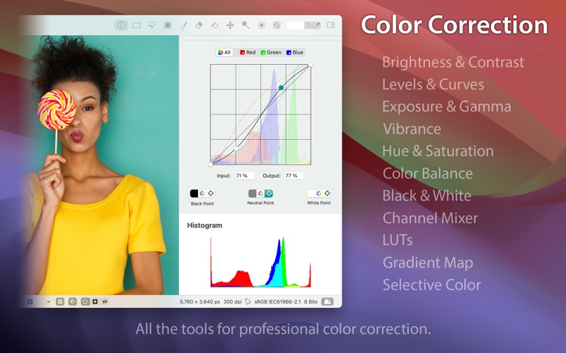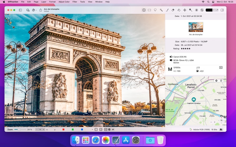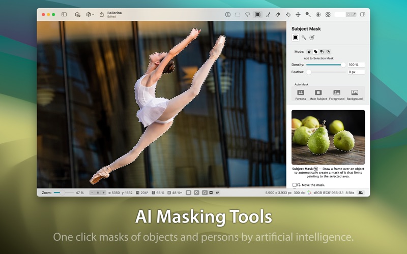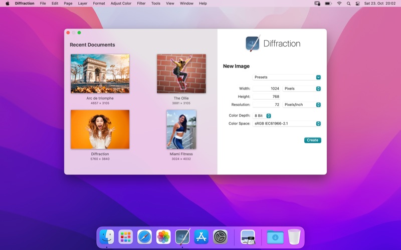 Diffraction 是一款专为 macOS 设计的全面图像编辑软件。无论你是专业摄影师还是热情的爱好者,Diffraction 都提供强大的工具,帮助你提升和创建令人惊叹的图像。 从多种流行格式(包括 JPEG 和 HEIC)导入你的照片,并支持带有图层和样式的 PSD 文档,实现无缝的导入和导出。轻松调整你的图像,使用高级编辑工具进行裁剪、缩放、旋转和放大。利用画笔和铅笔工具进行详细绘图,并使用矩形、椭圆形蒙版、套索工具、魔棒工具或快速蒙版工具来隔离图像的部分区域。用纯色或渐变填充区域,使用加亮和减淡工具提升照片效果,用克隆印章或去污工具修复缺陷,并使用模糊工具改变对象形状。 使用调整图层在不损失原始图像质量的情况下修改颜色,并探索用于亮度和对比度、色阶、色彩曲线、曝光和伽玛、饱和度、色相和饱和度、色彩平衡、黑白转换、通道混合、色调化、选择性颜色校正以及阴影和高光恢复的颜色滤镜。Diffraction 甚至可以自动调整颜色以获得最佳效果。 通过使用滤镜来模糊、扭曲和锐化图像,添加或减少噪点,减少红眼,改善皮肤等方式来提高图像质量。创建复杂的图层和蒙版组合,并以标准格式导出你的成果,方便分享你的创作。 Diffraction 利用人工智能让图像编辑变得更加轻松。主题蒙版工具可以使用 AI 创建详细的对象选择,而 Diffraction 可以自动创建精确的人员选择。 使用 Diffraction 强大且直观的工具,释放你照片的全部潜力,让图像编辑变得流畅而愉快。 • Updated application icon.
