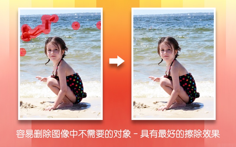 * 限时促销。原价140元。 * 现在升级到“超级橡皮擦Super Eraser Pro”,它可以帮您:擦除, 智能缩放, 去噪, 去雾! Super Eraser是一款能迅速删除照片中不需要的对象并实时修复和美化照片的图像修复软件。它采用最新的革命性的图像处理技术,具有最好的擦除效果. 各种实验表明, 比起那些会毁掉您照片的,包括专业的图片处理软件,Super Eraser能够给您最好的,更自然地图像处理效果。 使用Super Eraser快速删除中不需要的元素,如标志,文字,数据戳,水印,粉刺,多余的人......Super Eraser还会帮您瞬间自动修复图像,就仿佛那些就从来没有存在过。擦除,改善,修复和美化,只需几秒钟即可获得完美照片。世界各地的人每天都在使用Super Eraser美化自己的照片。今天就开始尝试Super Eraser吧! 注意: 请务必用绿色涂抹需要保留的部分,否则被涂抹掉的地方会出现周围的镜像. 下载Super Eraser的理由: - 令人惊叹的逼真效果: Super Eraser轻松处理复杂的场景或不规则形状并且利用被选择对象周围的像素点重建丢失或者损坏的区域来实现图片的无缝修复。 1 移除图片中的水印,标志,签名,日期戳,文字等。 2 删除图片中不需要的对象,如电线,建筑,垃圾桶等。 3 数字化脸部润饰,美化照片中的皮肤,消除痘痘,斑痕和皮肤瑕疵。 4 摆脱照片中多余行人、游客,还原最干净的风景。 - 超快的处理速度 只需几秒钟即可获得处理完成的完美图像,是时候和PhotoShop说再见啦! - 直观的用户界面: 简单易用,无需任何技术知识。你只需要选择画笔或者套索工具,将图片中你不想要的部分用红色标示出来,剩下的Super Eraser会帮你完成。 - 精密的工具: 快速并且不牺牲图片质量。 - 实时预览: 实时预览处理效果并与原始图片对比,随时进行必要的修订。 如果不满意处理结果可以立刻重做。 - 支持的图片格式: 支持所有流行的图片格式:JPG,PNG,GIF,BMP,TIFF ... 现在是时候下载这款神奇的图像润饰软件去修复并美化你的照片了. * 修正软件在10.14 Mojave新系统上的问题。 * 升级到“超级抠图”,一键去背景。现正半价促销。需要的快下手!