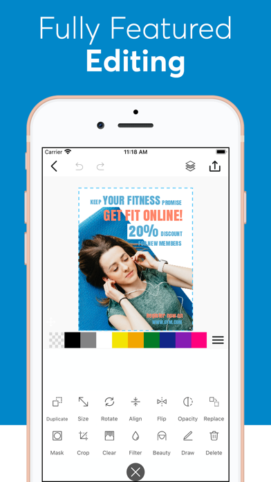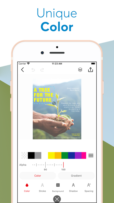 Phonto 很容易帮助您创建海报,传单,报价,在照片上添加文字,制作广告横幅,销售促销图形和您的业务。 - 您可以使用没有任何水印。 制作生活中每个部分的设计。 - 海报 - 横幅 - 广告 - 行情 - 广告 - 博客横幅 - 邀请 - 贺卡 - 祝福 - 传单 - 卡片 - 标志 突出 •在照片上添加文字 从超过300种字体中选择适合您的风格,语调和语音。调整字体的字体大小,颜色,线条高度,行间距,对齐方式,位置和旋转,以使您的设计画面完美。 •添加贴纸 从超过20种类别的贴纸中进行选择,并且在每个类别中都有超过300种贴纸,以便为例如不同类型的贴纸设计。销售,提供,生日,情人节,体育,音乐,爱,自然,天庆祝活动等。 •添加图稿和形状 大量的艺术品形状为创造flayer和添加时尚的报价优雅的照片。为社交网络制作精美的图形。 •图层管理器 不用担心管理布局,因为你有层选项可以轻松向上移动图层,你可以锁定恼人的图层。 •免费模板 我们已经免费提供现成的模板,每周都会添加更多!!!您可以选择所需的内容并开始编辑。不需要从头开始。 •保存并分享 将模板保存到设备库中。 直接在Facebook,Twitter,Instagram,Pinterest,WhatsApp等社交媒体帐户上分享您的创作。 从我们的图书馆中选择500多个图像的最佳背景,并设计数百种免费贴纸,艺术品元素和字体。您可以从设备库中选择图像到设计或拍照。 使用不同的100+叠加效果编辑背景,并选择模板大小,添加文本,元素,贴纸,边框,框架等。它还允许您在照片上书写并添加贴纸和框架。 Poster Maker可以帮助您创建海报,Flayer,照片上的文字,在照片上写下模因以及制作社交媒体横幅。还可以创建一天的庆祝活动,报价,爱情专辑,贺卡,邀请卡,销售,优惠和广告照片等等。 #Poster Maker提供自动续订订阅选项: •每周0.99美元 •您可以订阅无限制访问Intro.Maker中为购买而提供的所有功能和内容 •订阅按订阅计划每月计费 •确认购买时,将向iTunes帐户收取费用 •除非在当前期间结束前至少24小时关闭自动续订,否则订阅会自动续订 •帐户将在当前期间结束前24小时内收取续订费用,并确定续订费用 •订阅可由用户管理,购买后转到用户的帐户设置可以关闭自动续订 •如果提供免费试用期,任何未使用的部分将在用户购买该出版物的订阅时被没收(如果适用) 使用条款:https:/tos.vidanimate.co 隐私政策:https:/privacy.vidanimate.co -Bug fixes and improvements