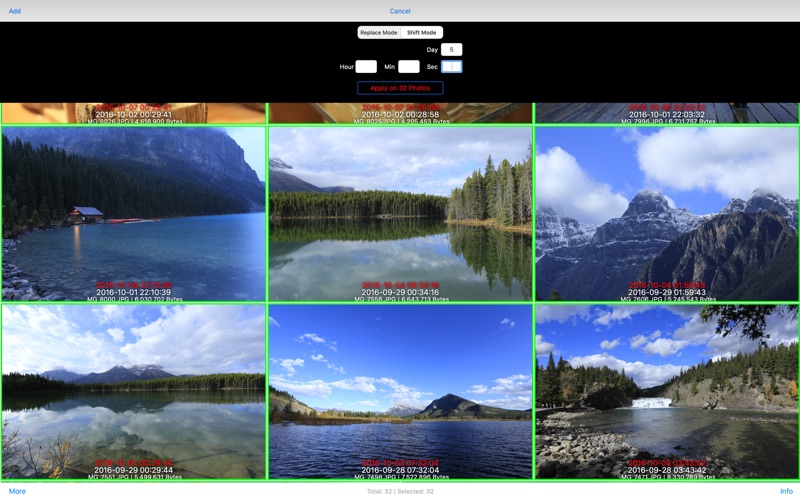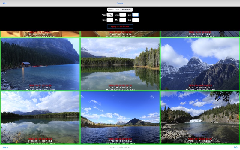 批量更改照片日期。 您可单独更改 年|月|日|时|分|秒 中的任意一个字段。 如何使用: 一.点击选择或反选图片 二.设置时间: 1.在导航栏点击[设置时间] 2.输入要设置的新时间 3.点击[应用于XX张照片],将新时间预设到您所选择的照片上去(很关键,很多用户反映不能修改时间,可能就是漏了这一步。)。 此时可以看到黄色时间已变成了您即将想要的新时间 请注意: 照片上黄色的代表即将新设的时间,白色代表原始时间 时间设置模式 --替换模式: 如:您可以单独设置'年'为2018,将两张2016年1月3日 及 2017年5月5日的照片修改为 2018年1月3日 及 2018年5月5日. --偏移模式: 如:您可以通过设置'日'的偏值为 -2 ,将上述两张照片日期变为:2016年1月1日 及 2017年5月3日 三.保存 点击导航栏最右边的[更改],进行实质性更改 文件保存模式: --拷贝模式: 先复制照片,再改新照片为指定日期。 文件安全性更高。 拷贝模式下,照片没有任何压缩,文件大小基本不变。 --拷贝模式: 暂不支持。(苹果手机版支持) 该APP仅仅更新时间信息,EXIF里的原有照片属性(如手机类型、镜头、GPS信息)不变。 适用图片格式: JPG | HEIC !!!!! 请注意 !!!!! -- 不支持覆盖模式保存图片 -- 只能从系统相册导入照片,修改完后,再将新照片保存回相册。 苹果手机版也已可用: 请在App Store 软件商店中搜索 'Batch Photo Redate' 或 '照片日期修改器' (手机版支持'覆盖模式保存图片') 苹果电脑专属版 亦可用: 请在Mac App Store 搜索:'Image Date Changer' 或 '照片日期修改器'